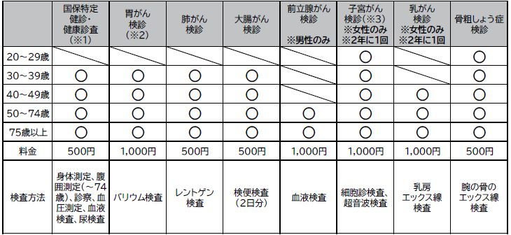 (※1)40~74歳は当麻町国民健康保険に加入している方、後期高齢者医療保険に加入している方が対象です。