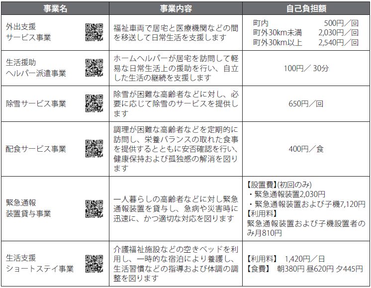 高齢者が住み慣れた地域で暮らしていけるよう、町が一部費用を負担し生活に必要なサービスを提供しています。