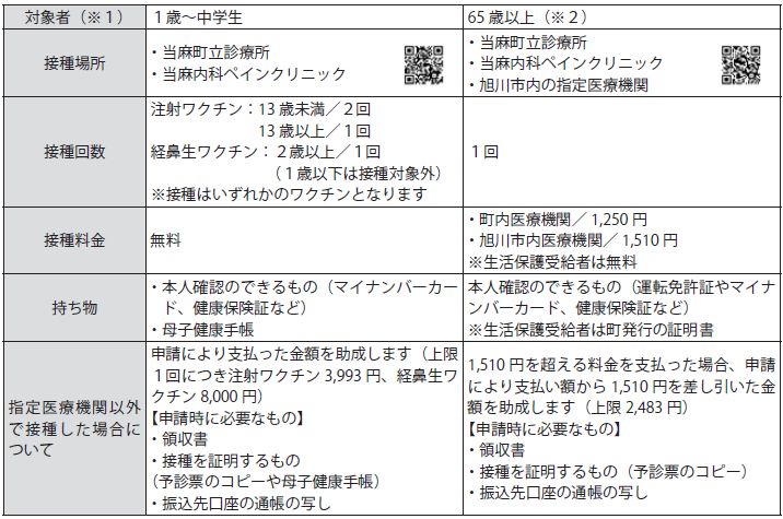 (※1)予防接種を受ける当日の年齢で、当麻町の住民基本台帳に記載されている方
