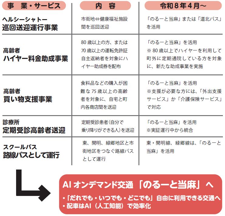 ▽図1「のるーと当麻」導入に伴い、統合される事業