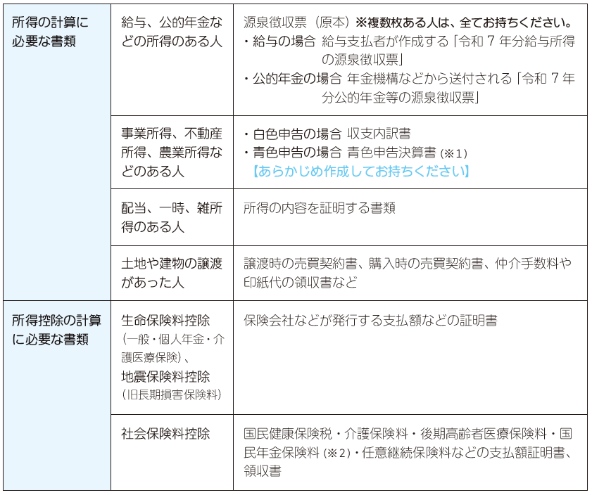 (※2) 国民年金保険料は、日本年金機構から送付された控除証明書が必要です。