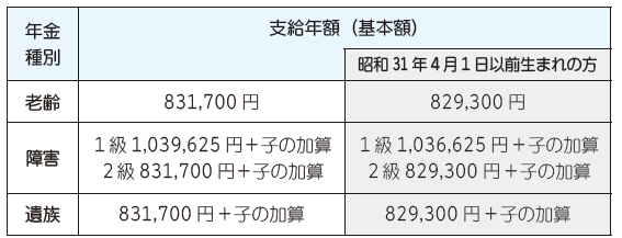 「子の加算」とは障害基礎年金・遺族基礎年金を受けている方に、生計を維持されている子(18歳到達年度の末日までの子か20歳未満の障がいのある子)が居る場合は、次の額が加算されます。
