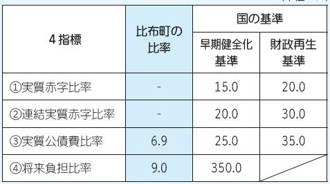 →比布町は(1)(2)とも黒字のため、赤字比率は発生していません。
