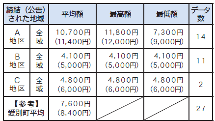 以上のことから、令和6年1月から12月までに締結(公示) された賃貸借における賃貸料水準(10a当たり) について、下記のとおりお知らせします。