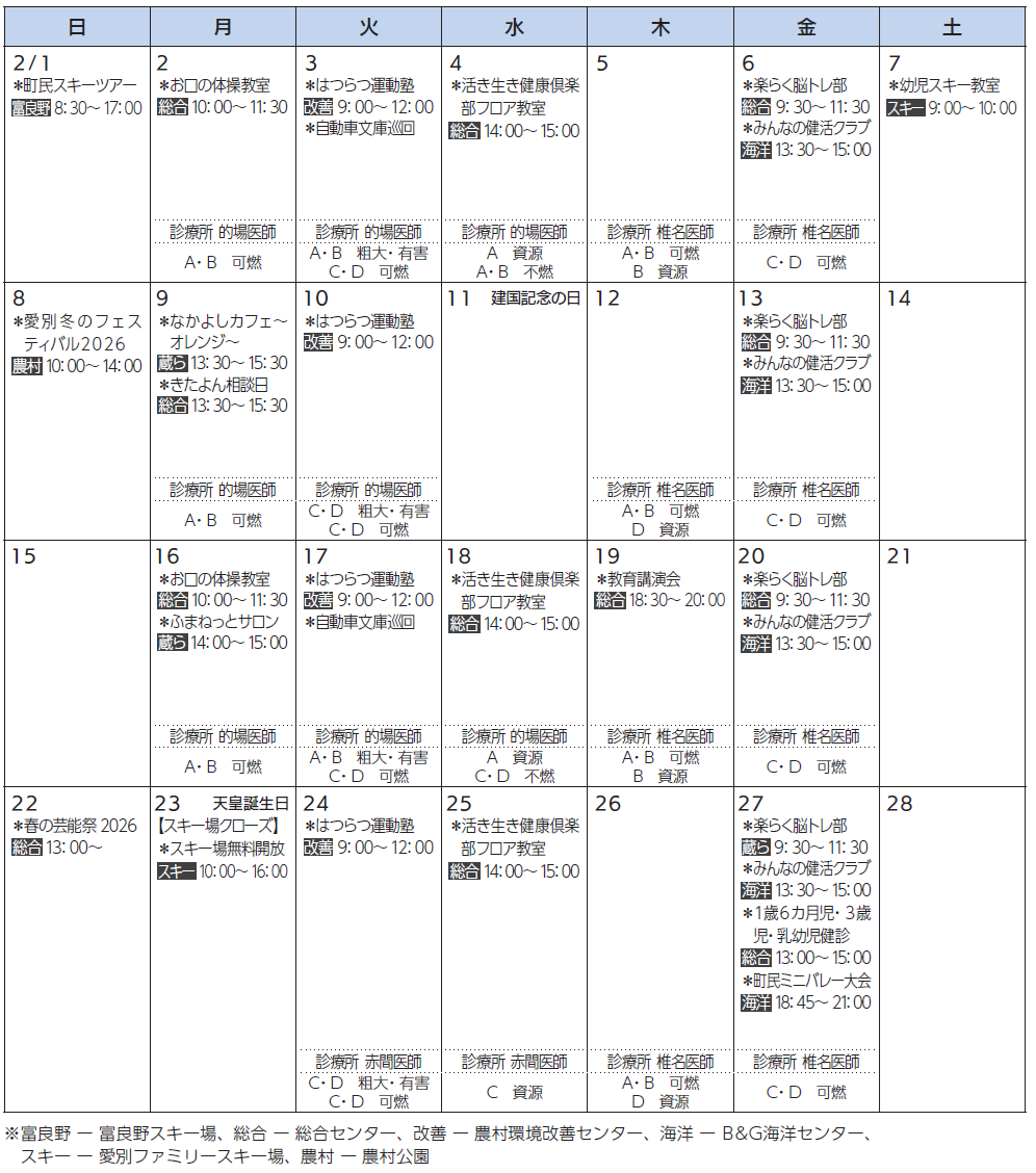 - 広報紙名 : 広報あいべつ 令和8年2月号