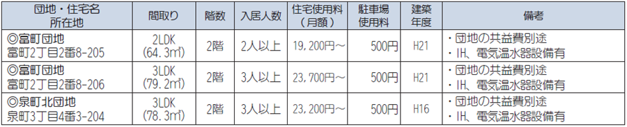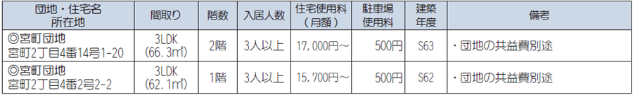 入居者の選考:住宅困窮度判定基準により入居者を選考(同点の場合は別途抽選)