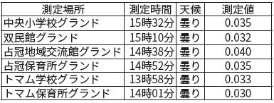 ※北海道の空間放射線量率モニタリング結果(上川総合振興局0.021~0.098)と比較して平常レベルと判断されます。