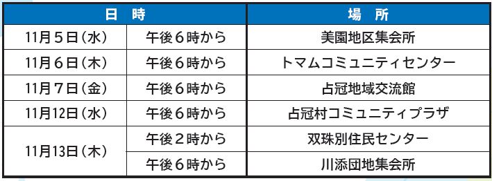 村では、年に1回、村民の皆さんと村づくりについて話し合う「住民懇談会」を開催しています。