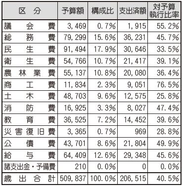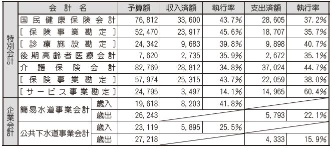 9月30日現在の特別会計及び企業会計の予算額及び執行状況は次のとおりです。