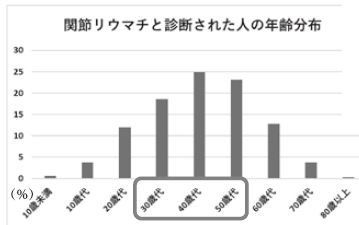 30~50歳代の女性に発症することが多く、(右図)患者さんの約8割が女性とされています。原因ははっきりと分かっていませんが、遺伝的な体質や、感染症、ストレス、喫煙などが関連していると考えられています。