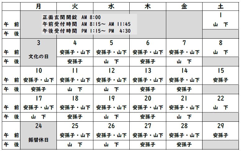 令和7年11月 診療カレンダー