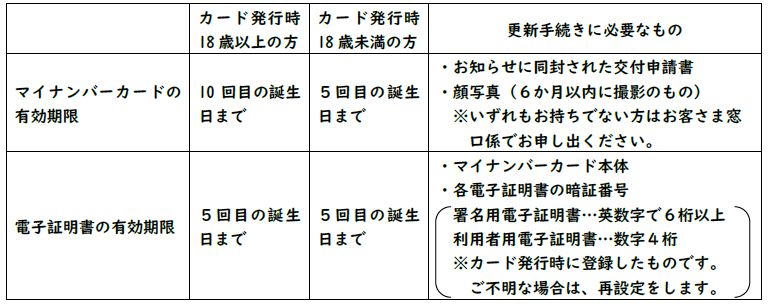 取得してから5年目または10年目の方は、電子証明書の更新やカード本体の更新の手続きがあります。