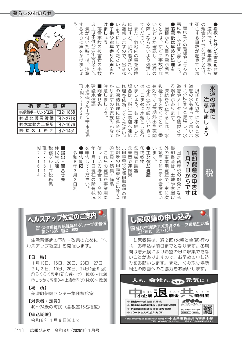 くらし 広報びふか 2026(令和8年)1月号_P.11 11/14 前の記事 次の記事 発行日 : 2025年12月25日 自治体名 : 北海道美深町 広報紙名 : 広報びふか 2026(令和8年)1月号 Tweet シェアする 広報びふか 2026(令和8年)1月号_P.10 広報びふか 2026(令和8年)1月号_P.12