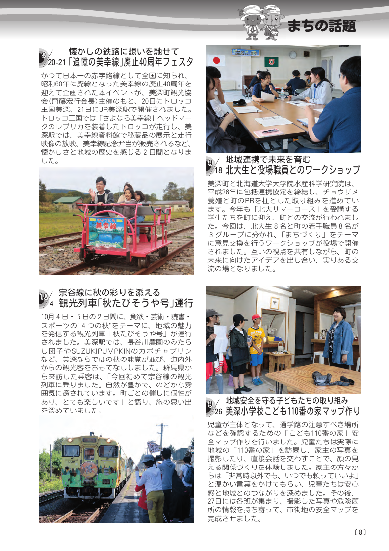 くらし 広報びふか 2025(令和7年)11月号_P.8 8/20 前の記事 次の記事 発行日 : 2025年10月23日 自治体名 : 北海道美深町 広報紙名 : 広報びふか 2025(令和7年)11月号 Tweet シェアする 広報びふか 2025(令和7年)11月号_P.7 広報びふか 2025(令和7年)11月号_P.9