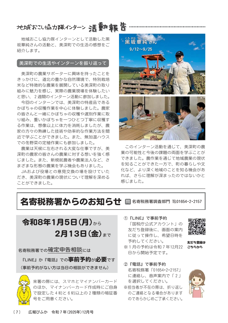 くらし 広報びふか 2025(令和7年)12月号_P.7 7/18 前の記事 次の記事 発行日 : 2025年11月27日 自治体名 : 北海道美深町 広報紙名 : 広報びふか 2025(令和7年)12月号 Tweet シェアする 広報びふか 2025(令和7年)12月号_P.6 広報びふか 2025(令和7年)12月号_P.8