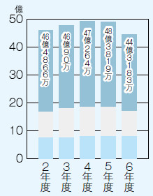 これを前年度と比較すると歳入決算額は4億6,647万4千円ほどの増(10.6%の増)、歳出決算額は4億3,478万2千円ほどの増(9.8%の増)となりました。