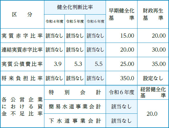 ▽令和6年度決算に基づく「財政健全化診断比率」