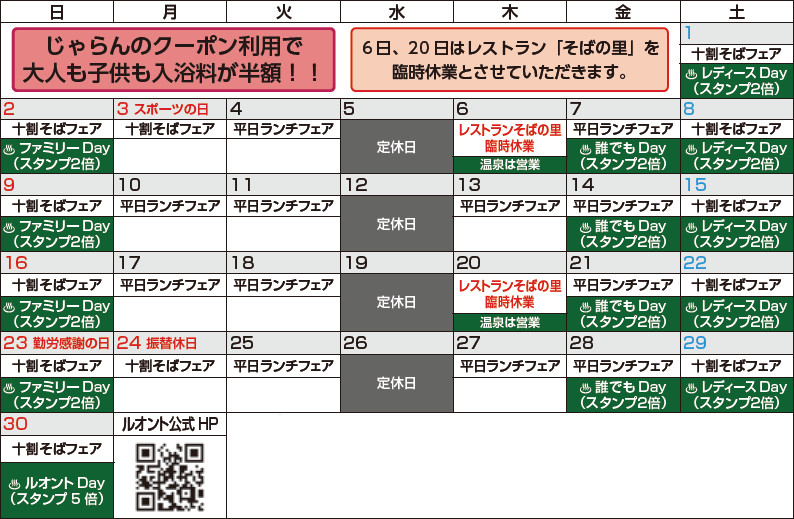問合せ:せいわ温泉ルオント