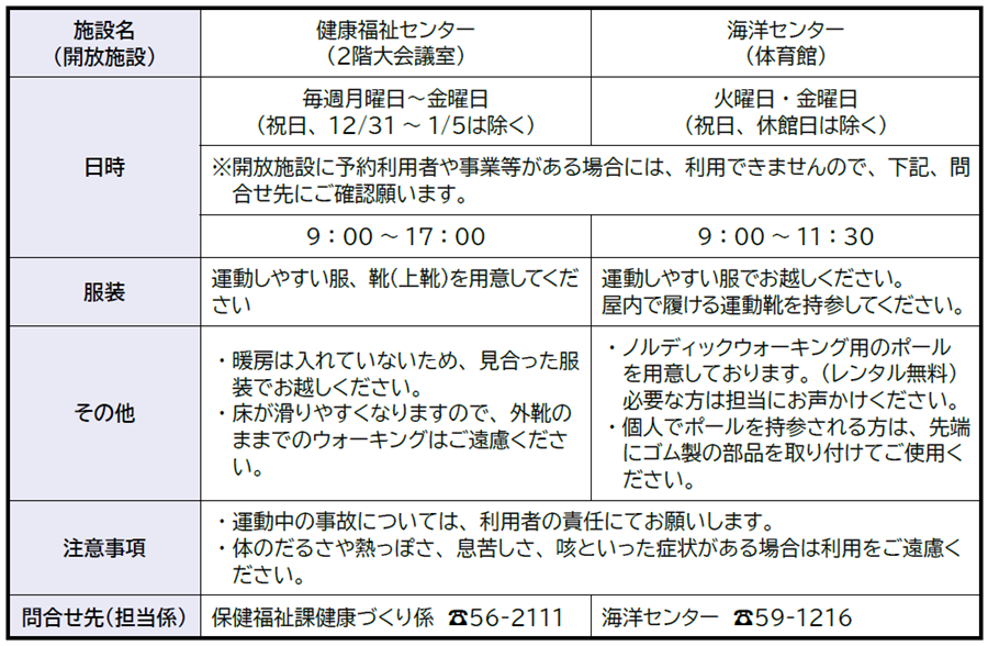 冬の健康づくりに室内ウォーキングの場として、ぜひご利用ください。