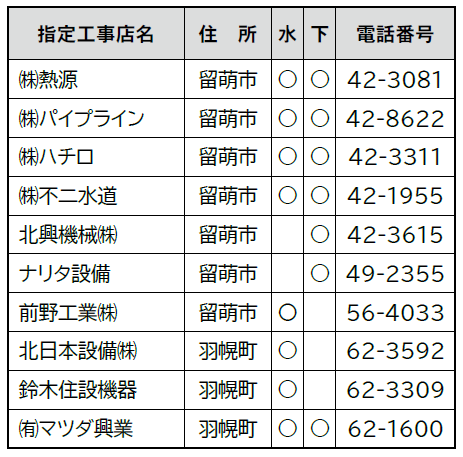 水…水道の指定店 下…下水道の指定店