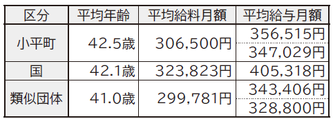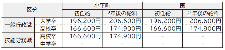 小平町職員の給与は、従事する職務と責任に応じ、国や他の地方公共団体の職員あるいは民間企業の従事者の給与や生計費、その他の事情を考慮し、町議会の審議を経て条例により定められています。