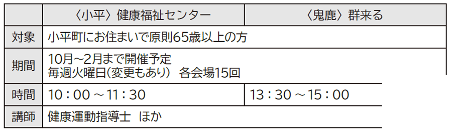 健康運動指導士による、介護予防のための体操教室を、2つの会場で実施します。