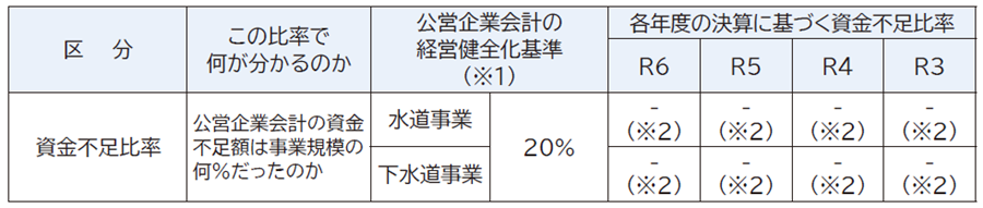 ※1 資金不足比率が基準を超えると、経営健全化計画の策定が必要となる「経営健全化団体」となります。