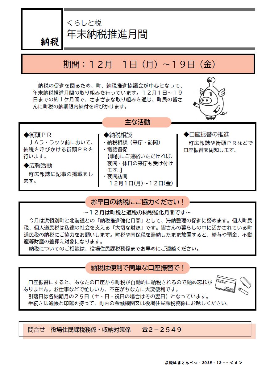 くらし 広報はまとんべつ 12月号(令和7年12月10日発行)Vol.667 P.6 6/16 前の記事 次の記事 発行日 : 2025年12月10日 自治体名 : 北海道浜頓別町 広報紙名 : 広報はまとんべつ 12月号(令和7年12月10日発行)Vol.667 Tweet シェアする 広報はまとんべつ 12月号(令和7年12月10日発行)Vol.667 P.5 広報はまとんべつ 12月号(令和7年12月10日発行)Vol.667 P.7