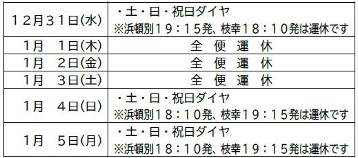 宗谷バスが運行しております浜頓別線(浜頓別町―枝幸町間)は次の期間中運休となりますのでお知らせします。