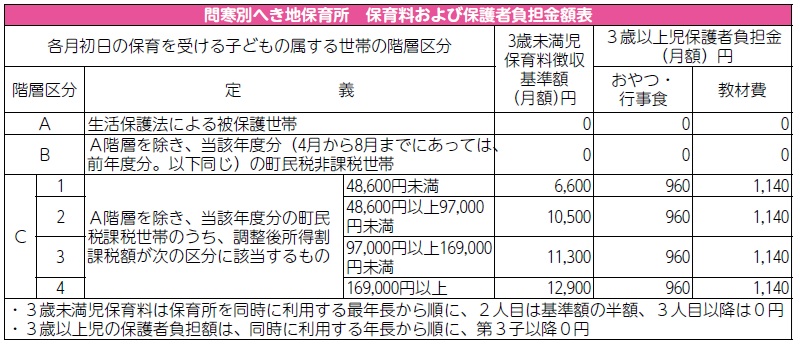 ▽問寒別へき地保育所の保育料及び保護者負担金について