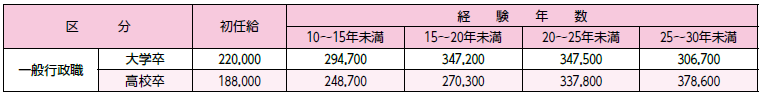 (2)職員の初任給と経験年数別平均給料月額(令和7年4月1日現在)(単位:円)