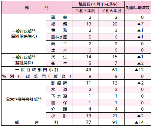 (5)部門別職員数の状況(単位:人)