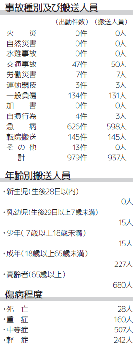 くらし 令和7年中の救急概要 28/54 前の記事 次の記事 発行日 : 2026年02月01日 自治体名 : 北海道美幌町 広報紙名 : 広報びほろ 2026年2月号 救急出動件数…979件 搬送人数…937人 前年と比較して出動件数が64件減少し、搬送人員も70人の減少となりました。 問合せ:消防本部G 警防・救急担当 【電話】73-1434 Tweet シェアする 初めての水中歩行教室 健康メモ