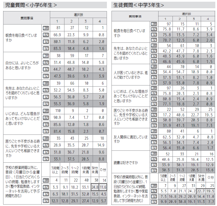 10月号では、今年度の全国学力・学習状況調査の結果をお知らせしました。11月号では、児童生徒質問紙の集計結果から見てとれた特徴や傾向をお知らせします。
