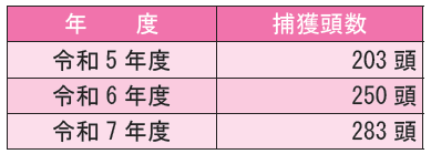 令和5年度から令和7年度の捕獲頭数については、右の表のとおりです。