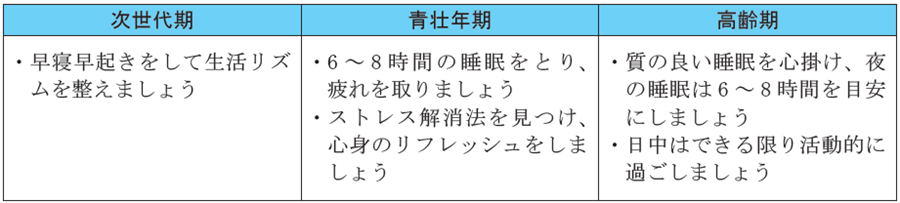睡眠・休養の大切さを発信し、こころの健康づくりに関する正しい知識や相談窓口の普及・啓発に努めます。