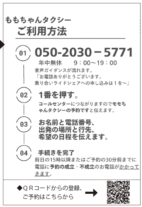 10月から、「ももちゃんタクシー」が運行開始し、町民の皆様にご利用をいただいています。