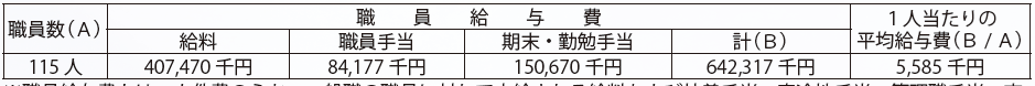 ※「1人当たり支給額」の欄には、令和7年4月分として支給すべき給料および各種手当の支給総額のそれぞれについて、当該支給総額に対応する「支給職員数」の欄に記載されている職員数で除して得た額としている。