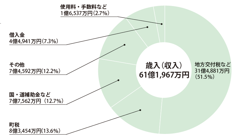 令和6年度における地方交付税総額は、28億4141万円で、普通交付税1億680万円の増額により前年度と比較して7955万円の増額となりましたが、義務的経費のより一層の抑制はもとより、補助金や町債等による財源確保に努め、土地改良事業や町有林整備事業など第一次産業基盤整備をはじめ、簡易水道区域拡張工事や町道改良舗装工事などのインフラ確保事業、町民センター空調設備設置工事、学校給食センター設備更新工事など教育施設関連の整備にも取り組みました。