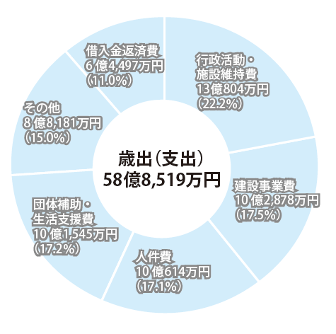 一般行政活動を行う経費や施設などの整備に使った維持的経費