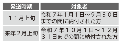 このため、日本年金機構から、次のスケジュールで「社会保険料(国民年金保険料)控除証明書」を対象者宛てに発送されますので、お手元に届きましたら、大事に保管し、年末調整や確定申告の際に使用してください。