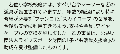 子育て ~岩佐小学校の遊具がリニューアルされました!~ 27/30 前の記事 次の記事 発行日 : 2025年11月04日 自治体名 : 北海道佐呂間町 広報紙名 : 広報サロマ 令和7年11月号 Tweet シェアする Baby Face 人のうごき 9月末