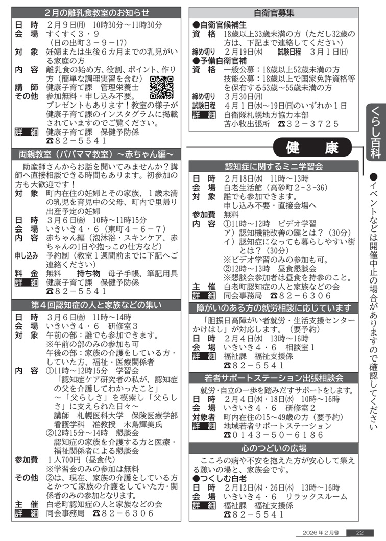 健康 白老町広報「元気」令和8年2月号 P.22 22/34 前の記事 次の記事 発行日 : 2026年02月01日 自治体名 : 北海道白老町 広報紙名 : 白老町広報「元気」 令和8年2月号 Tweet シェアする 白老町広報「元気」令和8年2月号 P.21 白老町広報「元気」令和8年2月号 P.23