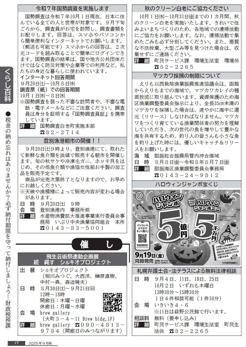 くらし 白老町広報「元気」令和7年9月号 P.17 17/30 前の記事 次の記事 発行日 : 2025年09月01日 自治体名 : 北海道白老町 広報紙名 : 白老町広報「元気」 令和7年9月号 Tweet シェアする 白老町広報「元気」令和7年9月号 P.16 白老町広報「元気」令和7年9月号 P.18