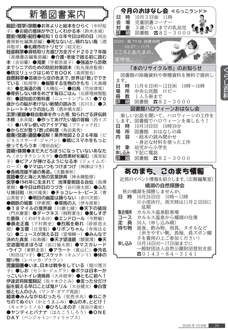 くらし 白老町広報「元気」令和7年10月号 P.26 26/32 前の記事 次の記事 発行日 : 2025年10月01日 自治体名 : 北海道白老町 広報紙名 : 白老町広報「元気」 令和7年10月号 Tweet シェアする 白老町広報「元気」令和7年10月号 P.25 白老町広報「元気」令和7年10月号 P.27