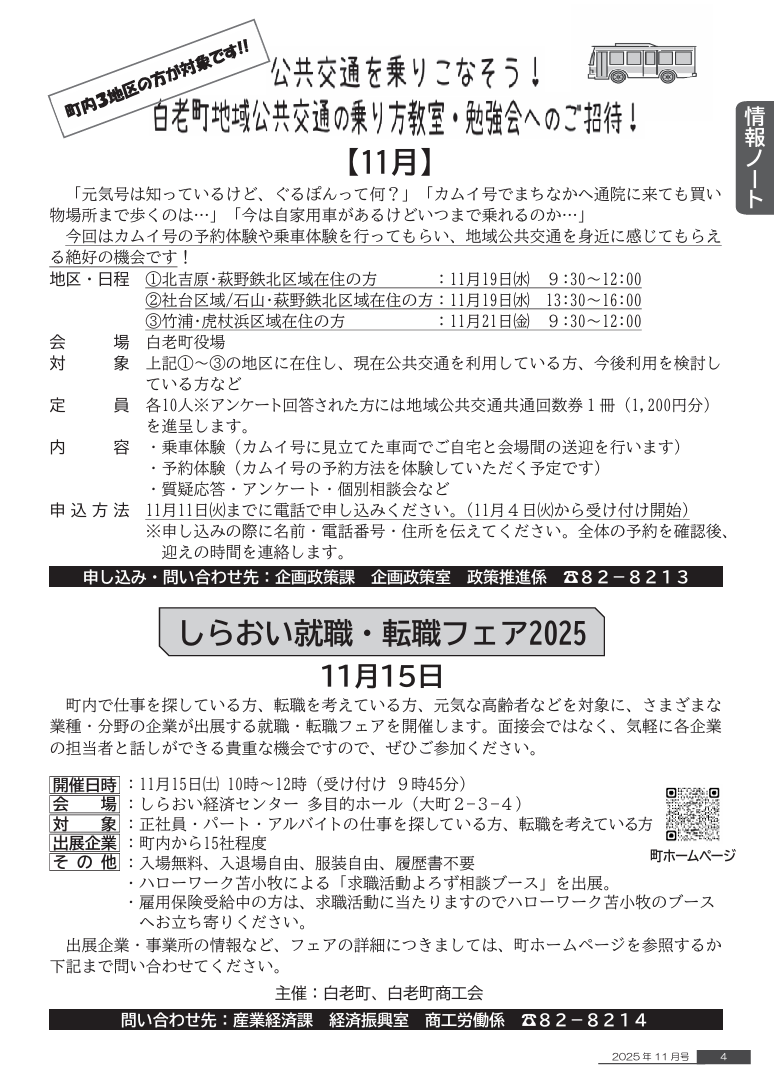 くらし 白老町広報「元気」令和7年11月号 P.4 4/26 前の記事 次の記事 発行日 : 2025年11月01日 自治体名 : 北海道白老町 広報紙名 : 白老町広報「元気」 令和7年11月号 Tweet シェアする 白老町広報「元気」令和7年11月号 P.3 白老町広報「元気」令和7年11月号 P.5