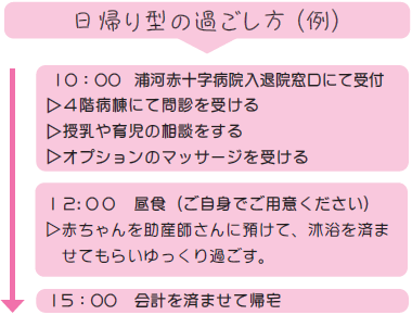 「産後ケアの利用で来ました」とお声がけください。利用料は帰りにお支払い。