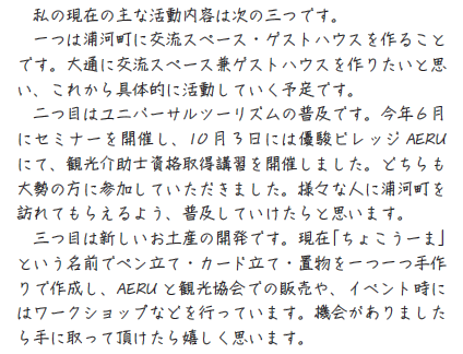 また、来年2月頃に町民向け活動報告会を開催する予定です。参加をお待ちしております。