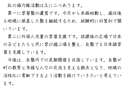 活動内容は地域によって様々で、農林業や水産業など一次産業への従事や、特産物を活かした商品開発といった観光振興、デジタル化などの住民の生活支援、交流の場づくりなど多岐にわたりますが、いずれも、活動計画に基づき活動をしていきます。