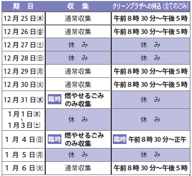 年末年始の公共施設や町内医療機関、ごみ処理などについてご確認ください。